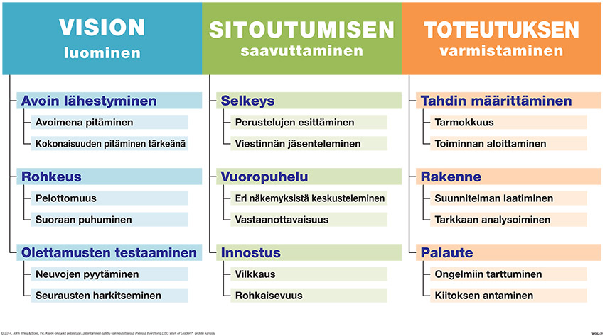 Work Of Leaders™ hyödyntää DiSC®-analyysia, joka auttaa johtajaa ymmärtämään oman käyttäytymisensä prioriteetit ja arvostamaan työkavereiden erilaisia toimintatapoja.